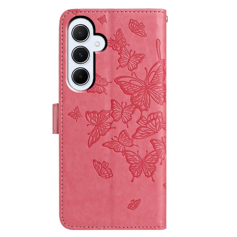 Skydda din Samsung Galaxy A55 5G med detta eleganta och funktionella Butterfly Imprinted Wallet Stand PU Leather Flip Phone Cover. Med en stilren design och praktiska funktioner är detta fodral det perfekta valet för den moderna användaren som vill kombinera stil med funktionalitet.