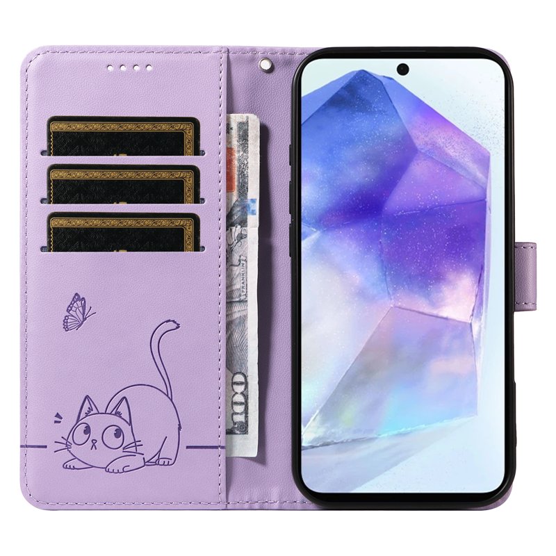 Handla denna produkt Samsung Galaxy A55 5G Plånboksfodral Konstläder Kattmönster - Lila