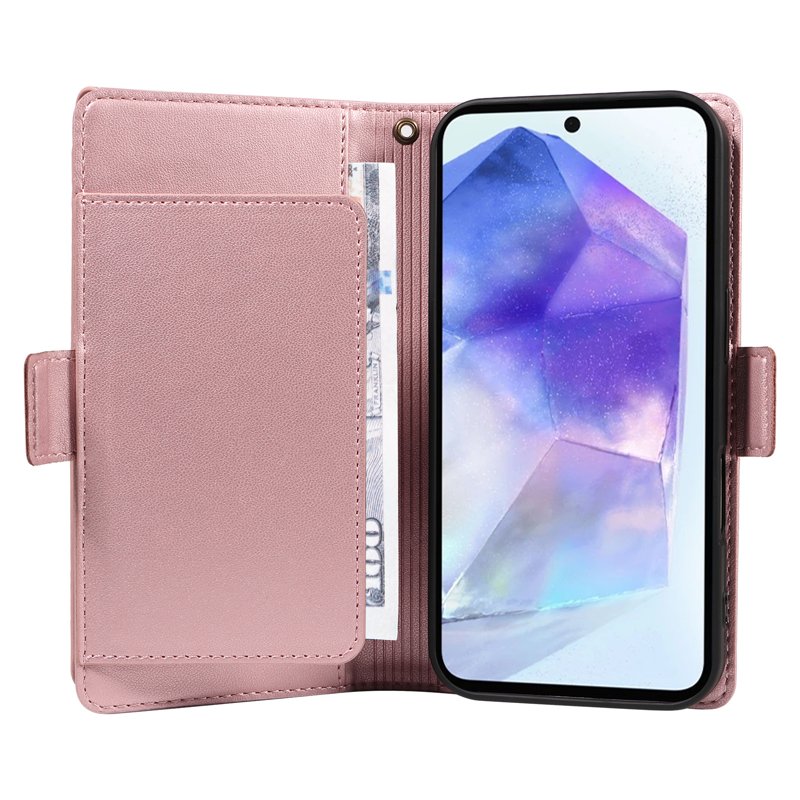 Samsung Galaxy A55 5G Plånboksfodral Konstläder Ställ - Roséguld