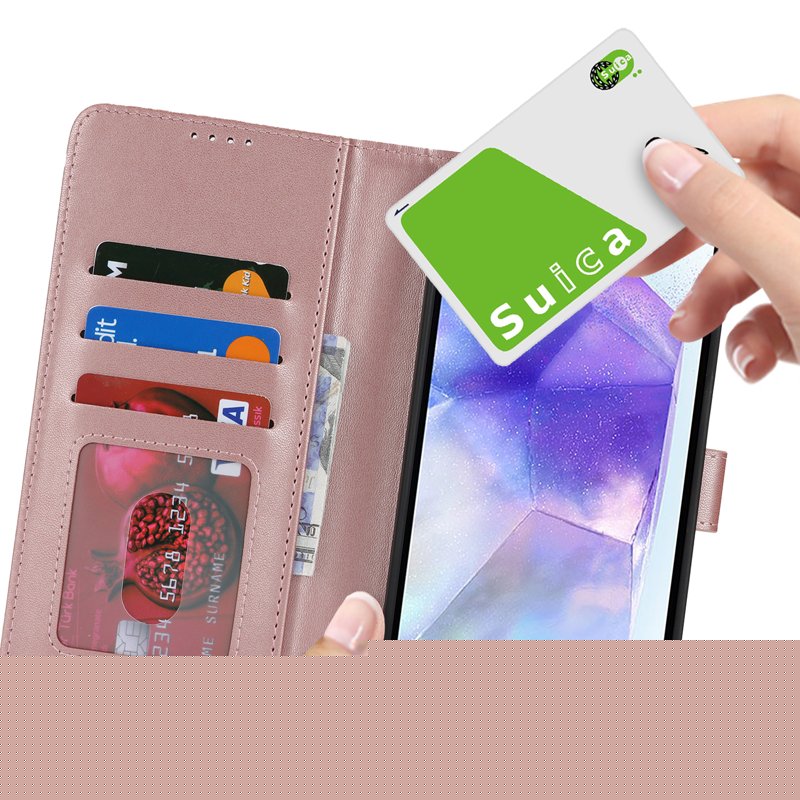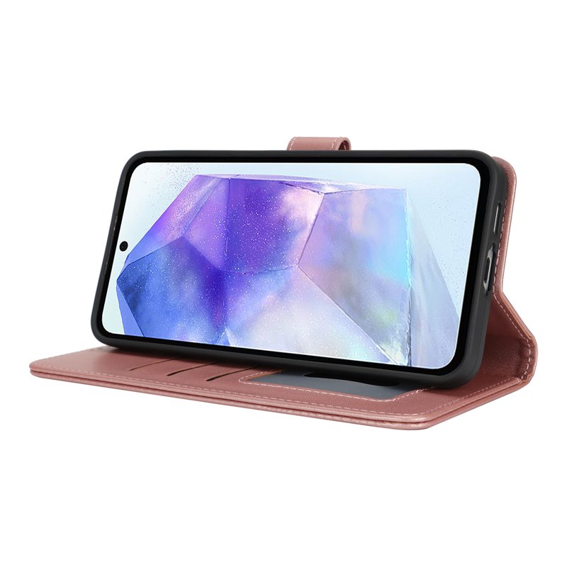 Skydda din Samsung Galaxy A55 5G med detta eleganta och funktionella Stand Case i roséguld. Denna stötsäkra läderplånboksfodral kombinerar stil med praktiska funktioner. Med plats för kort och kontanter är det den perfekta lösningen för den moderna användaren.