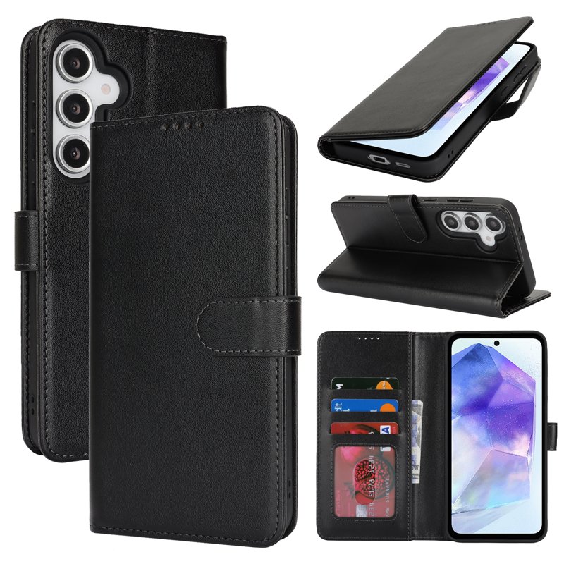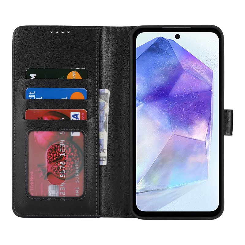 Skydda din Samsung Galaxy A55 5G med detta stötabsorberande läderfodral. Det är både praktiskt och stiligt. Med plats för kort och kontanter är det den perfekta lösningen för den moderna användaren. Fodralet erbjuder också en stabil ställfunktion för bekväm användning.