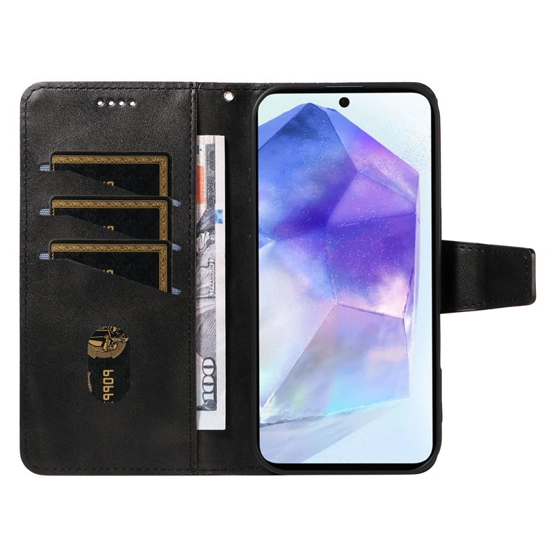 Skydda din Samsung Galaxy A55 5G med detta eleganta läderfodral. Fodralet kombinerar stil och funktionalitet. Det är perfekt för den som vill ha ett praktiskt och snyggt skydd för sin telefon. Med flera kortfack och en ståfunktion är detta fodral en utmärkt följeslagare i vardagen.