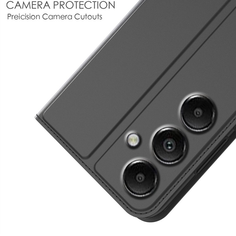 Samsung Galaxy A55 5G Skal Äkta Läder Flip Ställ - Svart