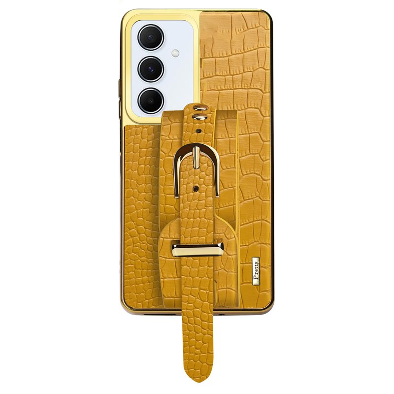 Mobilskal till Samsung Galaxy A55 5G Elektropläterad Konstläder + TPU - Gul
