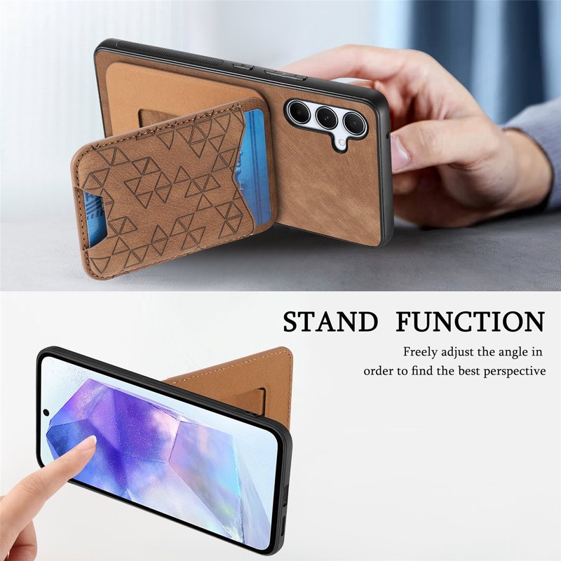 Skydda din Samsung Galaxy A55 5G med detta eleganta och funktionella fodral. Det imiterade mönstret ger en unik stil, medan det slitstarka materialet säkerställer långvarigt skydd. Med en inbyggd kortficka och justerbar kickstand är detta fodral både praktiskt och snyggt.
