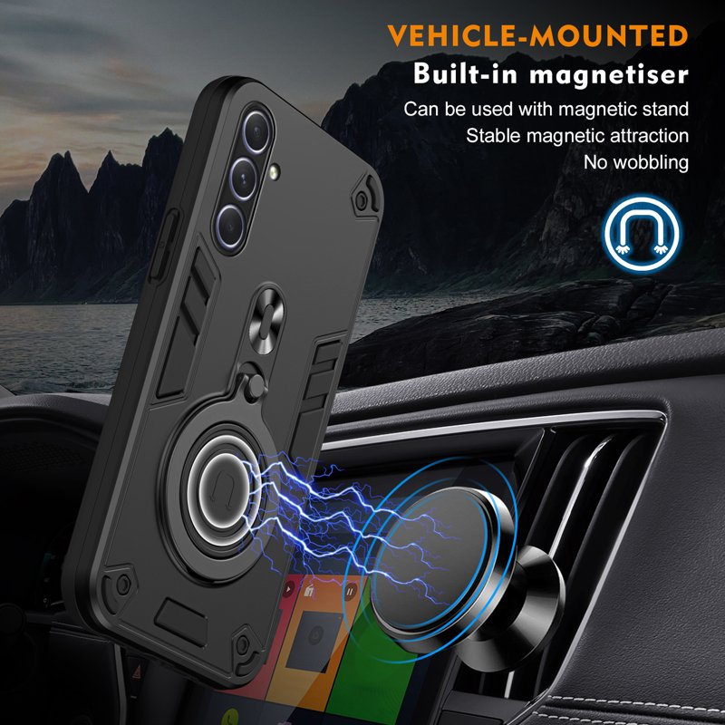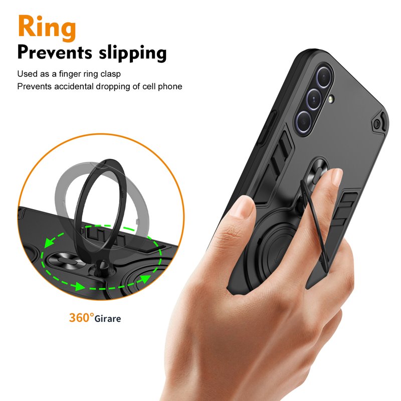 Skydda din Samsung Galaxy A55 5G med detta robusta och funktionella fodral. Med en roterande kickstand och högkvalitativa material erbjuder detta fodral både stil och säkerhet. Perfekt för den som vill ha en praktisk lösning för både vardagligt bruk och underhållning.