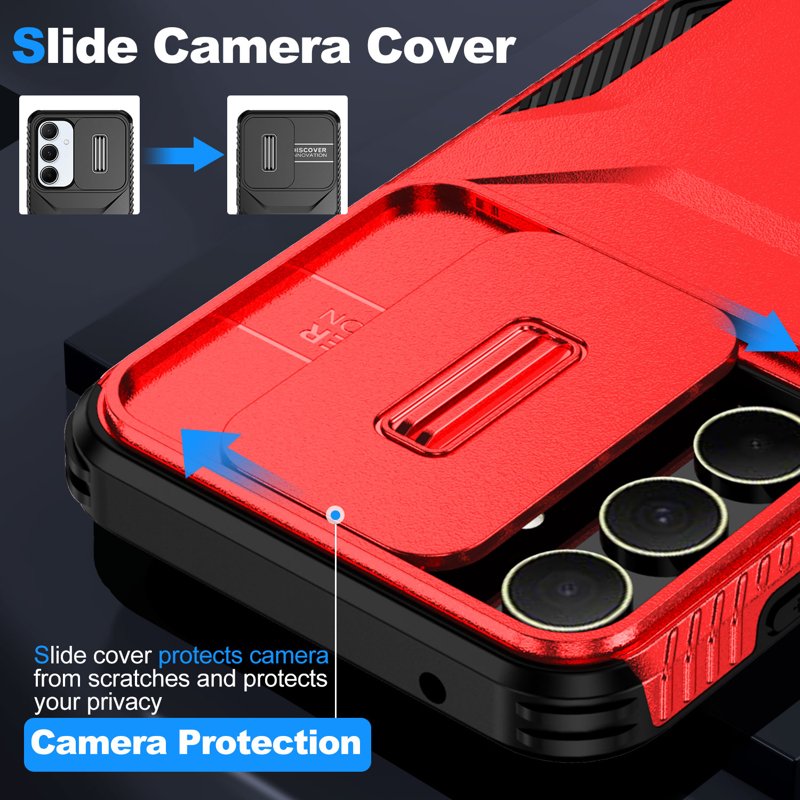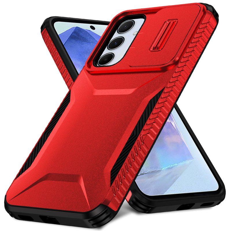 Skydda din Samsung Galaxy A55 5G med detta chockresistenta fodral i PC+TPU. Med en unik design och praktiska funktioner erbjuder detta fodral både säkerhet och stil. Den glidande kameraskyddet och det halkfria greppet gör det till ett utmärkt val för alla användare.