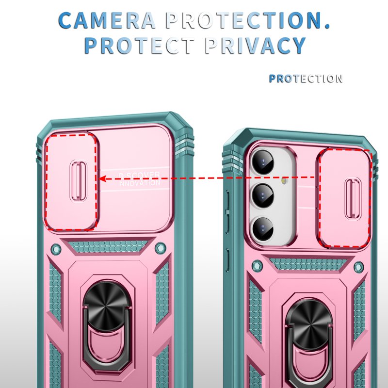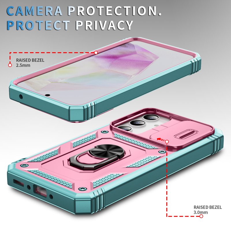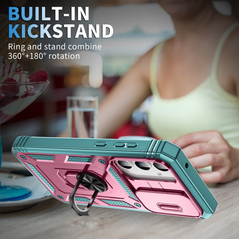 Samsung Galaxy A55 5G Skal TPU+PC Camshield Hybrid - Rosa-Grön