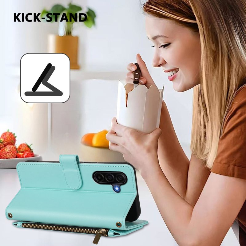 Samsung Galaxy A57 Plånboksfodral Konstläder Blommönster - Mintgrön