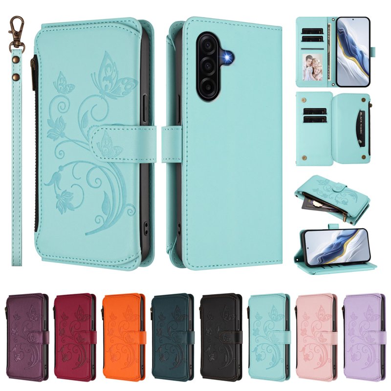 Elegant och funktionell. Detta fodral i PU-läder och TPU-material har en vacker design med fjärilar och blommor. Det är mer än bara ett skydd. Med RFID-blockering skyddar det dina kort. Dessutom fungerar det som ett stativ och är kompatibelt med trådlös laddning. En säker magnetstängning och en stilren handledsrem gör det till det perfekta valet för den moderna användaren.