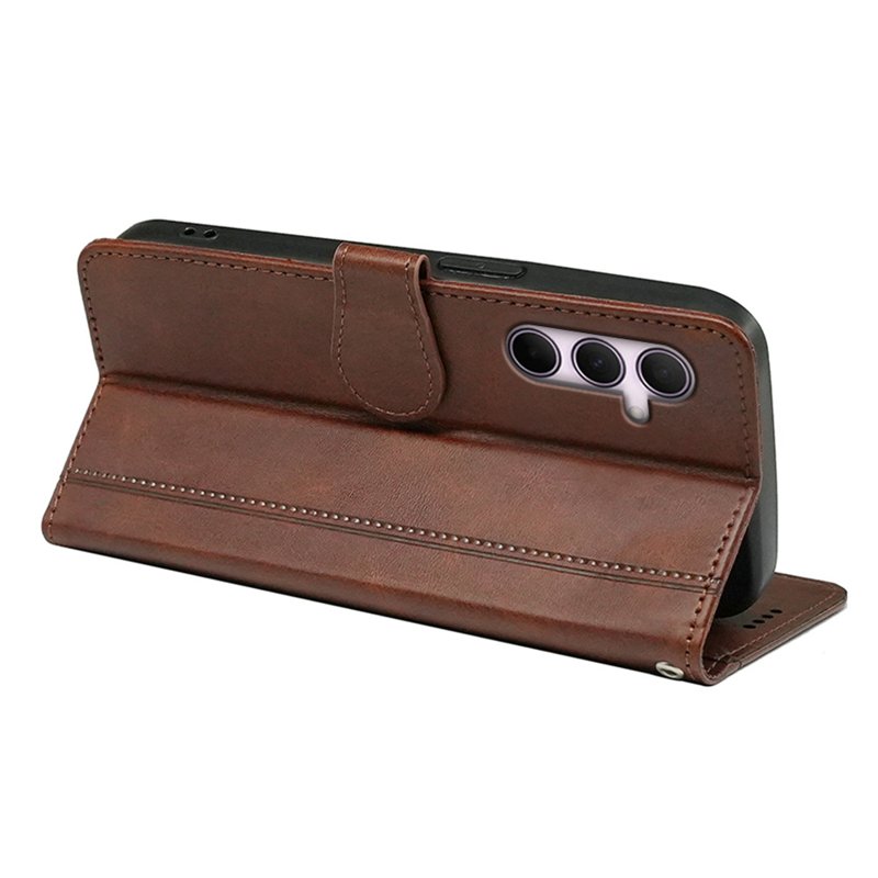 Samsung Galaxy A57 Fodral Äkta Läder Ställfunktion - Brun