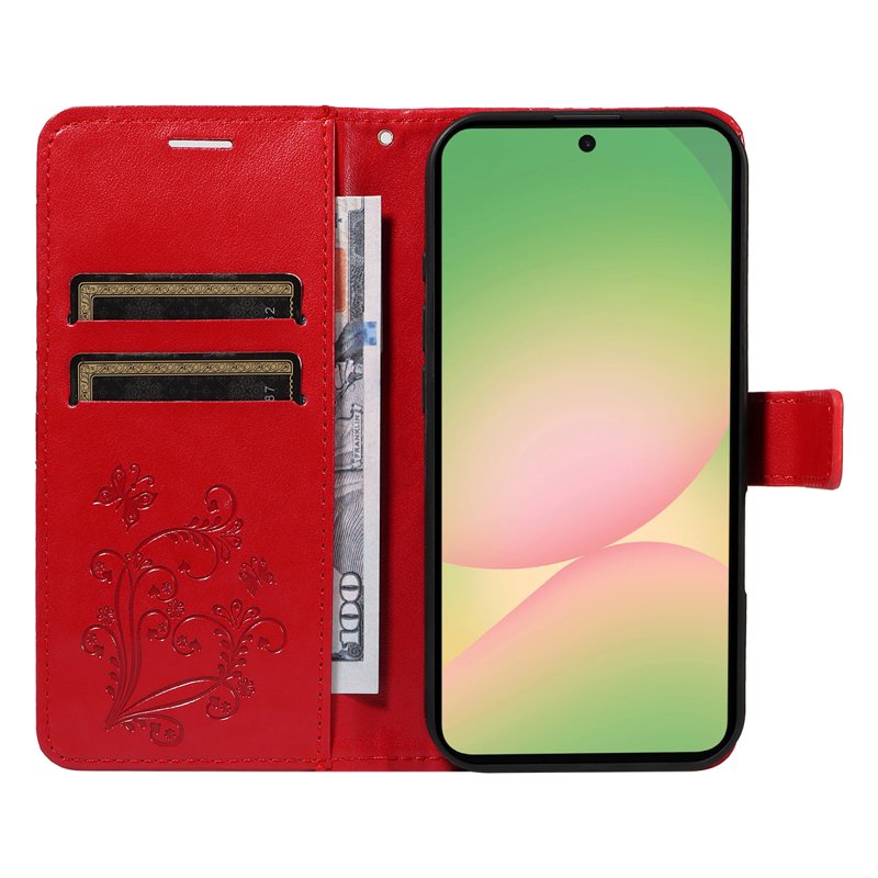 Samsung Galaxy A57 Plånboksfodral Konstläder Blommönster - Röd