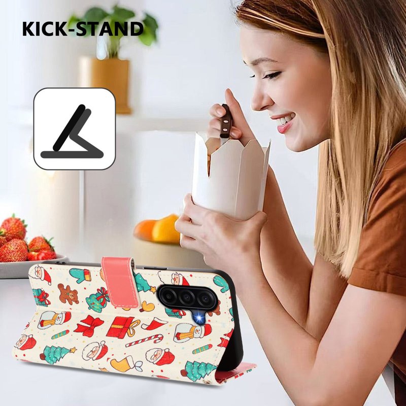Detta eleganta fodral i PU-läder och TPU-material erbjuder både stil och hållbarhet för din telefon. Med en unik juldesign sticker det ut och ger en personlig touch. Fodralet är praktiskt med plats för kort och kontanter, vilket gör det perfekt för vardagsbruk. Dessutom erbjuder det omfattande skydd och en smidig handsfree-funktion.