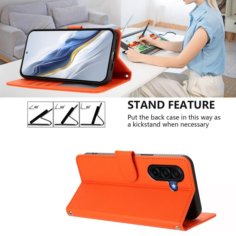 Detta fodral är tillverkat av högkvalitativt PU-läder och TPU-material. Det erbjuder hållbart skydd för din enhet och har flera praktiska funktioner. Med kortfack och en plånboksficka kan du enkelt organisera dina viktigaste tillhörigheter. Det är också designat för att stödja trådlös laddning, vilket gör det enkelt att ladda din enhet utan att ta av fodralet.