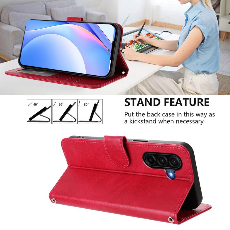 • Anti-drop skydd med PU + TPU-konstruktion: Tillverkad av klassiskt kalvskinns-texturerat PU-läder och stötabsorberande TPU.