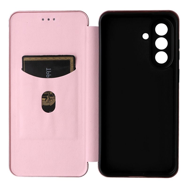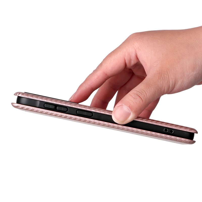 Denna mobilskal kombinerar stil och funktionalitet. Med en elegant kolfiberdesign och dubbelt skydd är den perfekt för den moderna användaren. Skalet är både slitstarkt och praktiskt, vilket gör det enkelt att hålla ordning på dina kort. Den magnetiska stängningen ger extra säkerhet, och den inbyggda ställfunktionen gör det enkelt att njuta av media utan att hålla i telefonen.