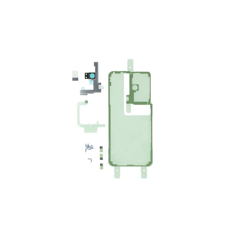 Komplett tejpset med skruvar för reparation av Galaxy S21 Ultra 5G. Settet innehåller reservdelar som är original från Samsung och håller hög kvalitet.