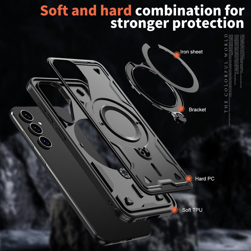 Detta fodral erbjuder militärklassat skydd för din enhet. Tillverkat av hållbara PC- och TPU-material, skyddar det mot stötar och fall. Med en inbyggd kickstand kan du enkelt njuta av handsfree-visning. Dessutom är det kompatibelt med MagSafe-laddare för snabb och säker laddning. Fodralet har upphöjda kanter för att skydda skärmen och kameran.