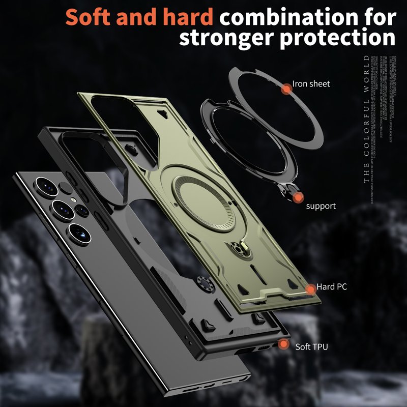 Vårt telefonfodral erbjuder militärklassad skyddsteknik. Tillverkat av hållbara PC- och TPU-material, ger det ett effektivt skydd mot stötar och fall. Med en inbyggd kickstand kan du enkelt njuta av handsfree-visning. Fodralet är även kompatibelt med MagSafe-laddare för snabb och säker laddning.