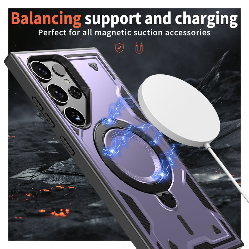 Denna telefonfodral erbjuder överlägset skydd med en hållbar kombination av PC och TPU-material. Den är stöttålig och fallskyddad, vilket gör att din enhet förblir säker under tuffa förhållanden. Med en 360-graders roterande kickstand kan du enkelt njuta av handsfree-visning i flera vinklar. Fodralet är också kompatibelt med MagSafe-laddare för snabb och säker laddning.