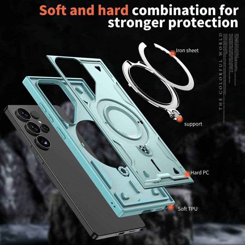 Vårt telefonfodral erbjuder militärklassad skydd för din enhet. Tillverkat av hållbara PC- och TPU-material, ger det stöt- och fallskydd. Med en inbyggd kickstand kan du enkelt njuta av handsfree-visning. Fodralet är också kompatibelt med MagSafe-laddare för snabb och säker laddning. Skydda din telefon med stil och funktionalitet.