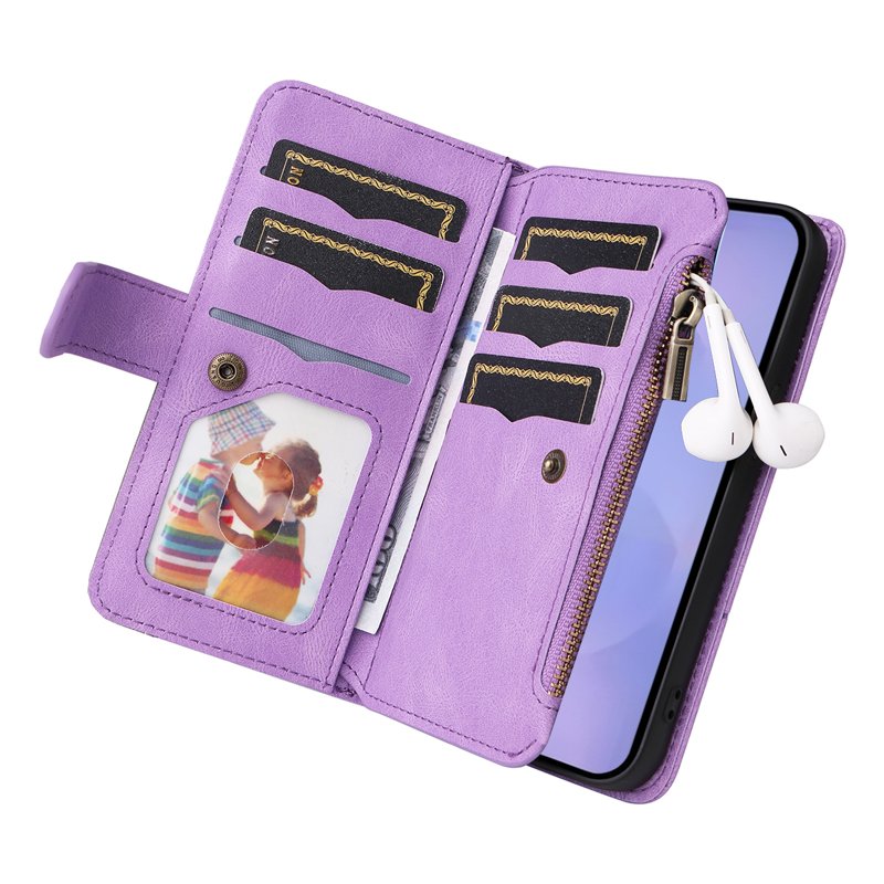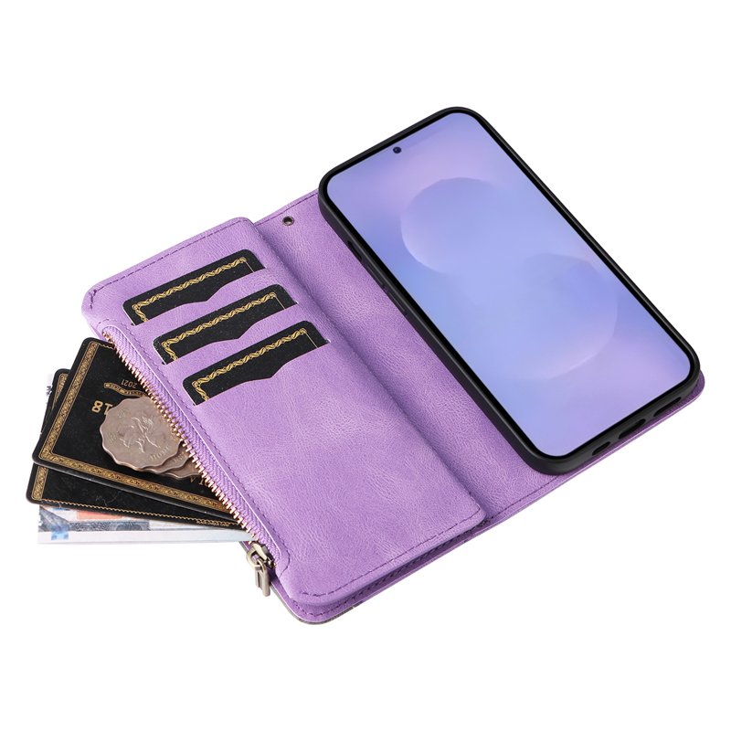 Skydda din Samsung Galaxy S26 eller S26 Pro med detta eleganta läderfodral. Fodralet har en praktisk dragkedja och plats för upp till 9 kort. Det är både stiligt och funktionellt, perfekt för den moderna användaren. Med en justerbar ställning kan du enkelt njuta av handsfree-användning.