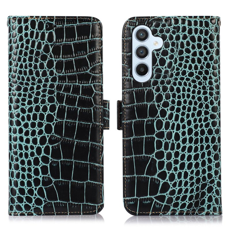 Skydda din Samsung Galaxy S26 eller S26 Pro med detta eleganta RFID-blockerande plånboksfodral i äkta nötläder. Med en stilren krokodilstruktur kombinerar det både funktion och design. Fodralet erbjuder praktiska lösningar för att förvara kort och kontanter, samtidigt som det ger ett pålitligt skydd mot stötar och repor.