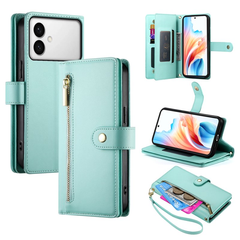 Skydda din Samsung Galaxy S26 Edge med det här stiliga och funktionella Zipper Pocket Wallet Leather Phone Cover i mintgrön. Denna plånboksfodral erbjuder både säkerhet och bekvämlighet. Med flera fack för kort och kontanter är den perfekt för den moderna livsstilen.