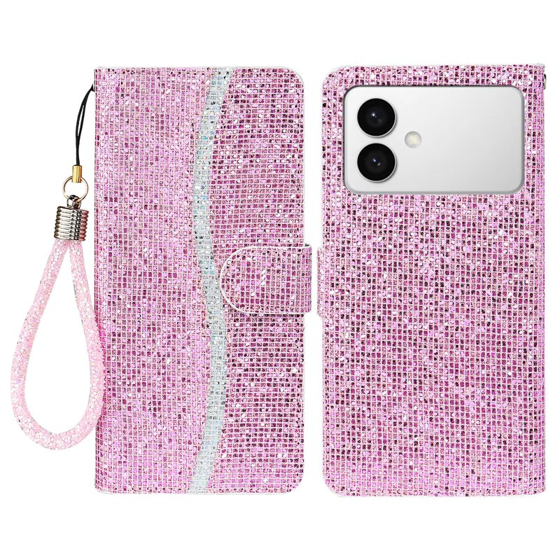 Skydda din Samsung Galaxy S26 Edge med detta eleganta PU-läderfodral. Med kortfack och glittrande design kombinerar detta fodral stil och funktionalitet. Det är den perfekta lösningen för att hålla din telefon och dina värdesaker säkra och lättillgängliga.