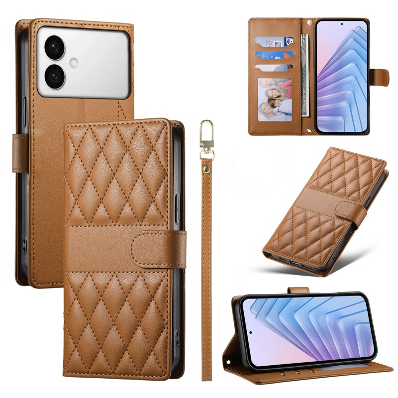 Skydda din Samsung Galaxy S26 Edge med denna stiliga och funktionella plånboksfodral i PU-läder. Med en elegant rombformad sömnad erbjuder detta fodral både säkerhet och stil. Det är perfekt för den som vill ha en praktisk lösning för att bära med sig kort och kontanter.