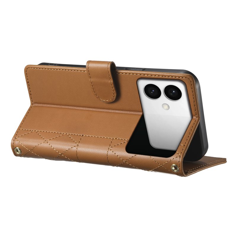 Samsung Galaxy S26 Edge Fodral Rhombus Sömnad Ställ Äkta Läder - Brun