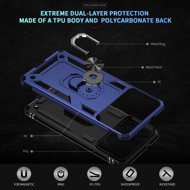 - Multi-funktionell kickstand: Inbyggd 360-graders roterande metallring för handsfree-visning.