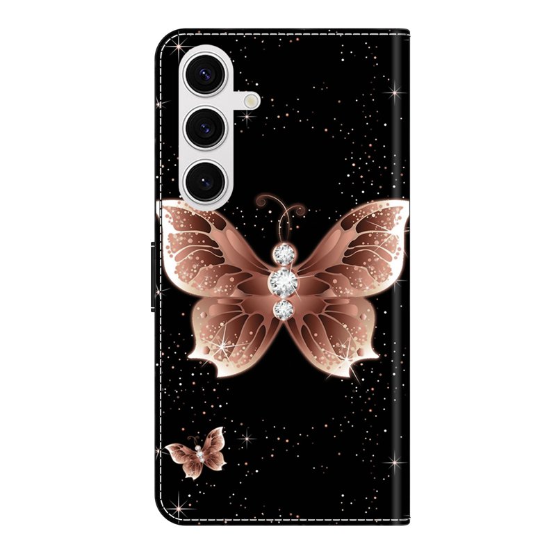 Samsung Galaxy S26 Fodral 3D Mönster PU Läder - Rosa Diamant Fjäril