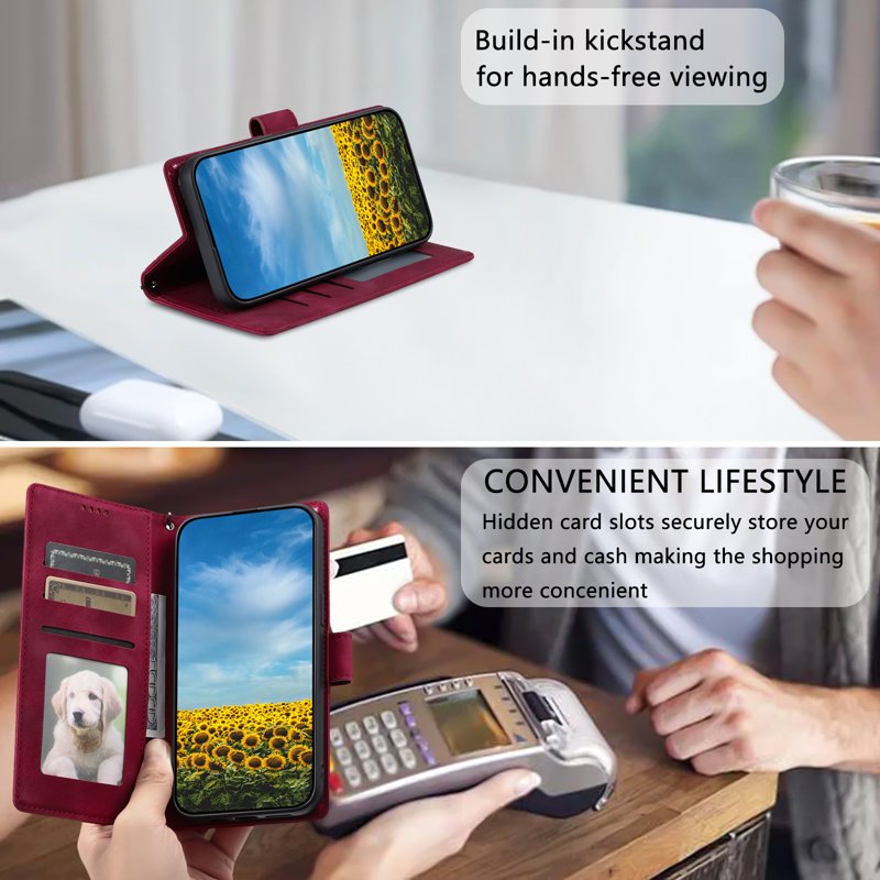 • Magnetisk stängning - Med en magnetisk framklämma för att stänga fodralet, vilket skyddar telefon, pengar och kort.