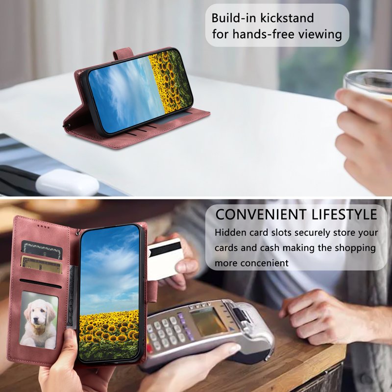 • Magnetisk stängning: Med en magnetisk frontklämma som håller telefonen, pengar och kort säkra.
