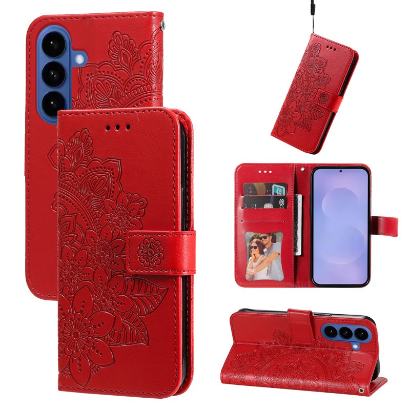 Handla denna produkt Samsung Galaxy S26 Plus Plånboksfodral Blommönster Konstläder Ställ - Röd
