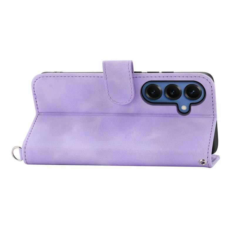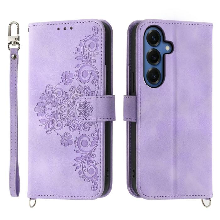 Skydda din Samsung Galaxy S26+ med detta eleganta fodral i ljuslila PU-läder. Fodralet har en vacker blommönsterdesign och erbjuder både stil och funktionalitet. Med flera kortfack och en praktisk ställfunktion är detta fodral den perfekta lösningen för den moderna användaren.