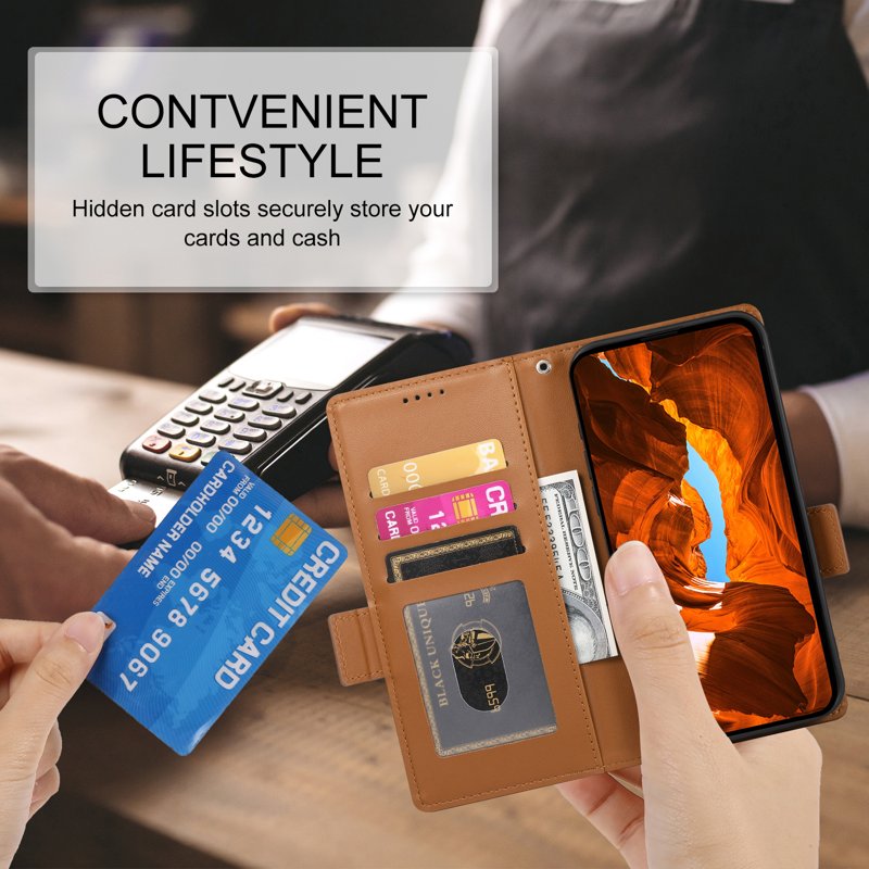 - Säker stängning - Magnetiska sidoklappar ger säker och enkel åtkomst till din telefon och dina kort.