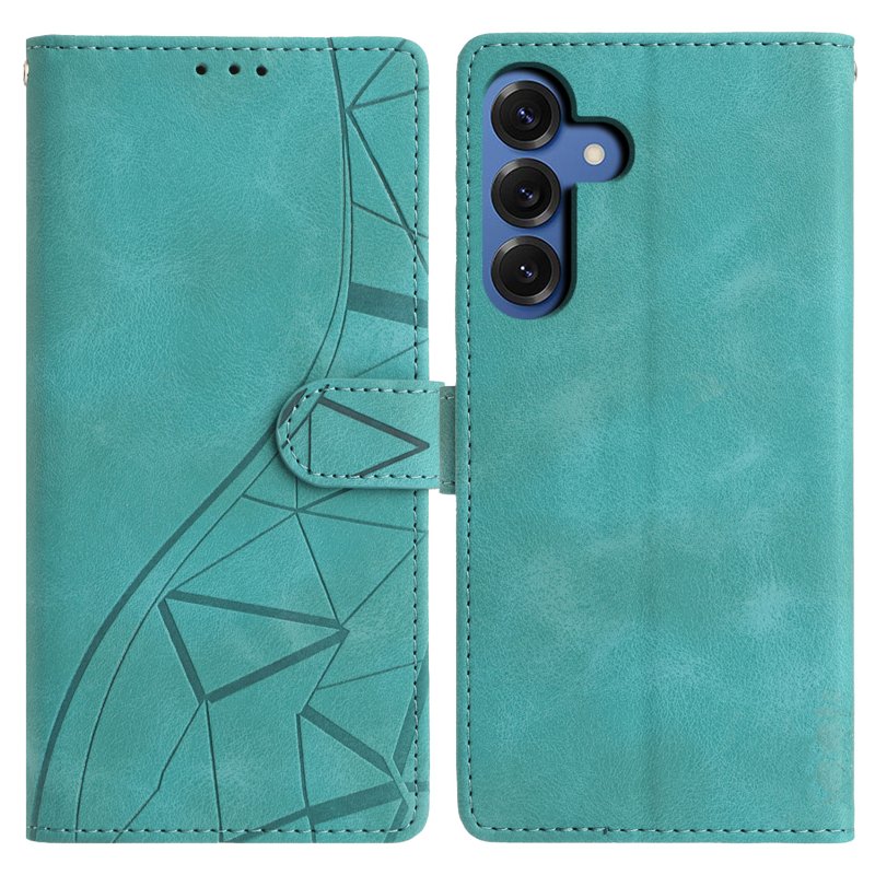 Samsung Galaxy S26 Plus Fodral Ställ Impräntad Mönster Äkta Läder - Grön