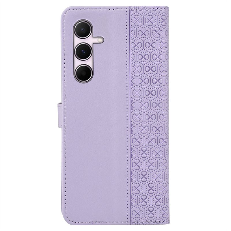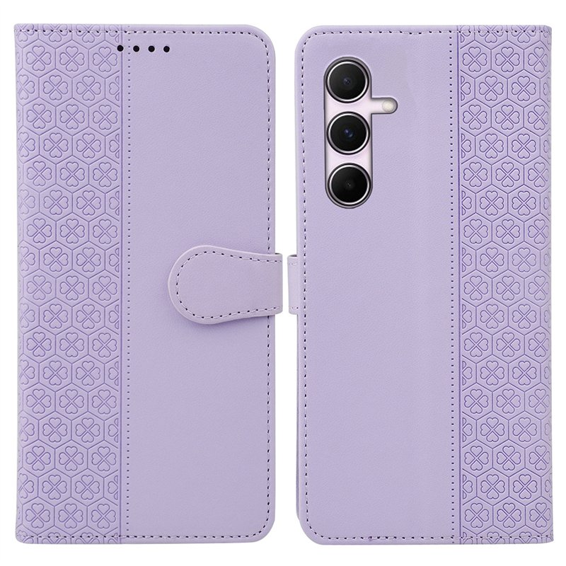 Skydda din Samsung Galaxy S26+ med detta eleganta fodral i ljuslila läder. Fodralet har en magnetisk stängning och en charmig fyrklöverdesign. Det erbjuder både stil och funktionalitet, perfekt för den moderna användaren.
