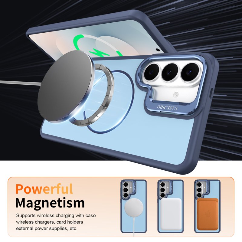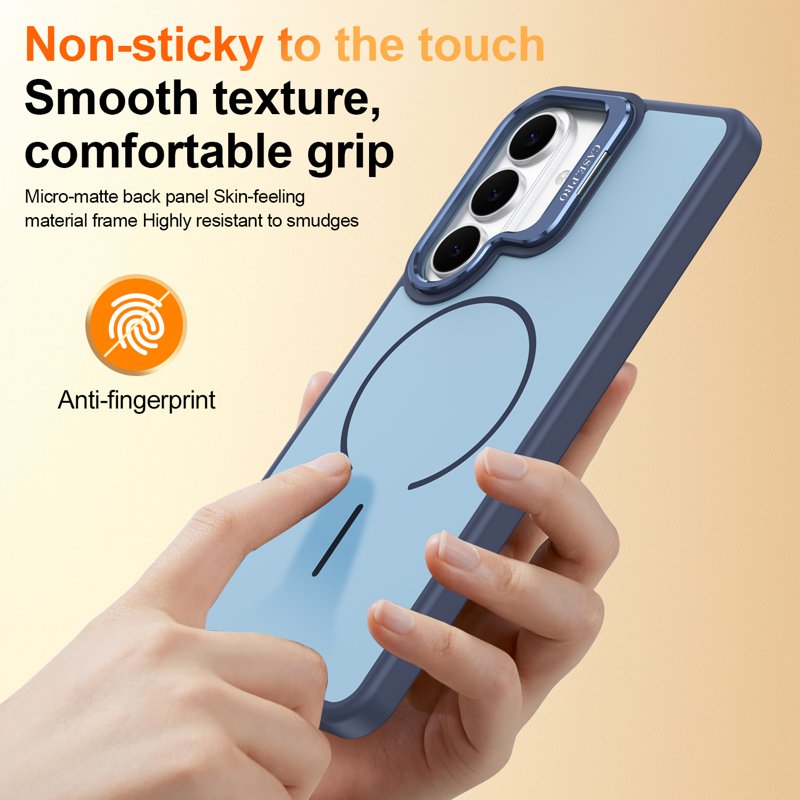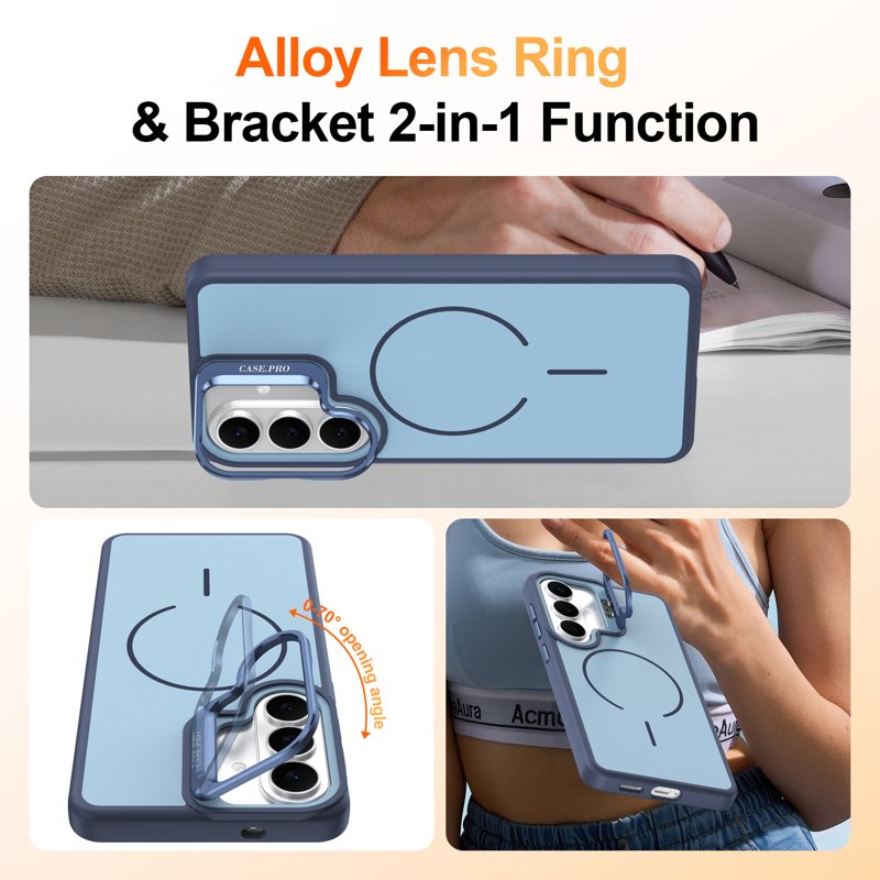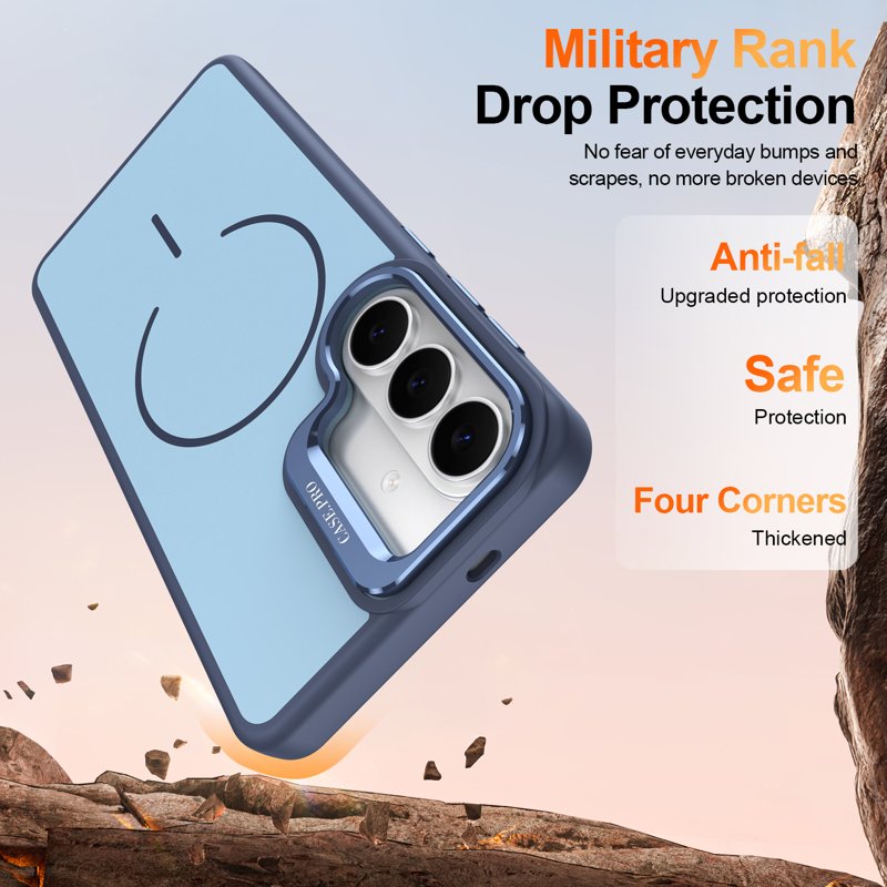 Skydda din Samsung Galaxy S26+ med detta magnetiska fodral i hög kvalitet. Fodralet är tillverkat av en hållbar kombination av PC och TPU. Det har en vikbar kickstand för enkel videovisning och samtal. Med sin magnetiska kompatibilitet kan du enkelt fästa det på laddare och bilfästen.
