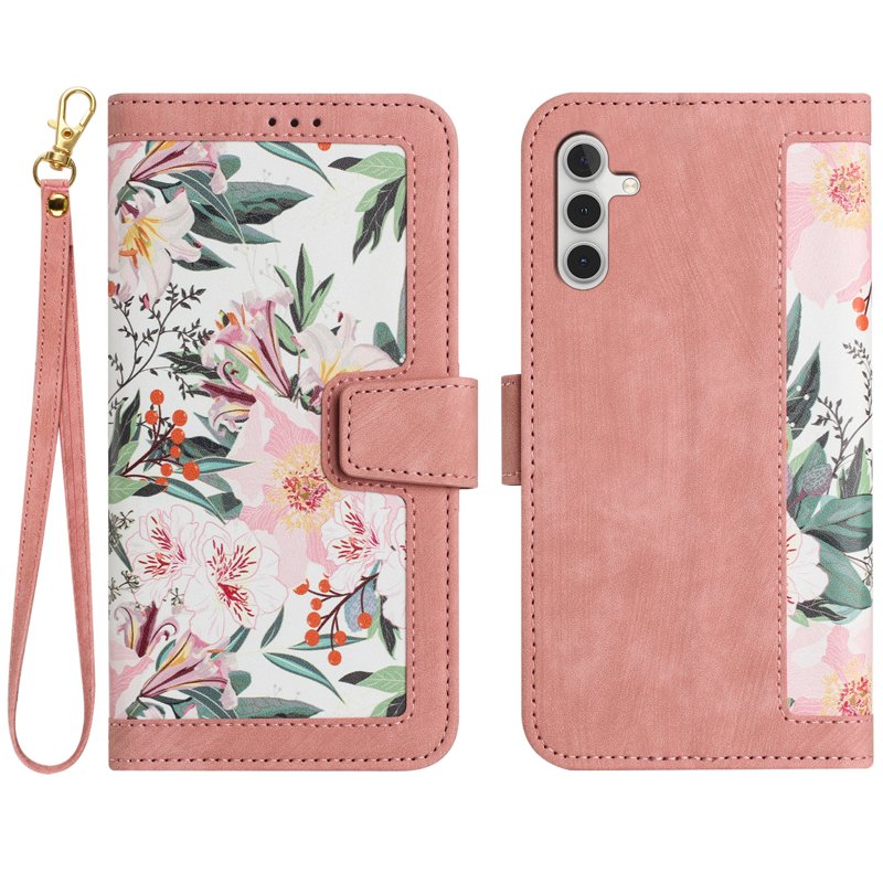 Samsung Galaxy S26 Plus Mobilskal PU Läder Blommönster - Rosa