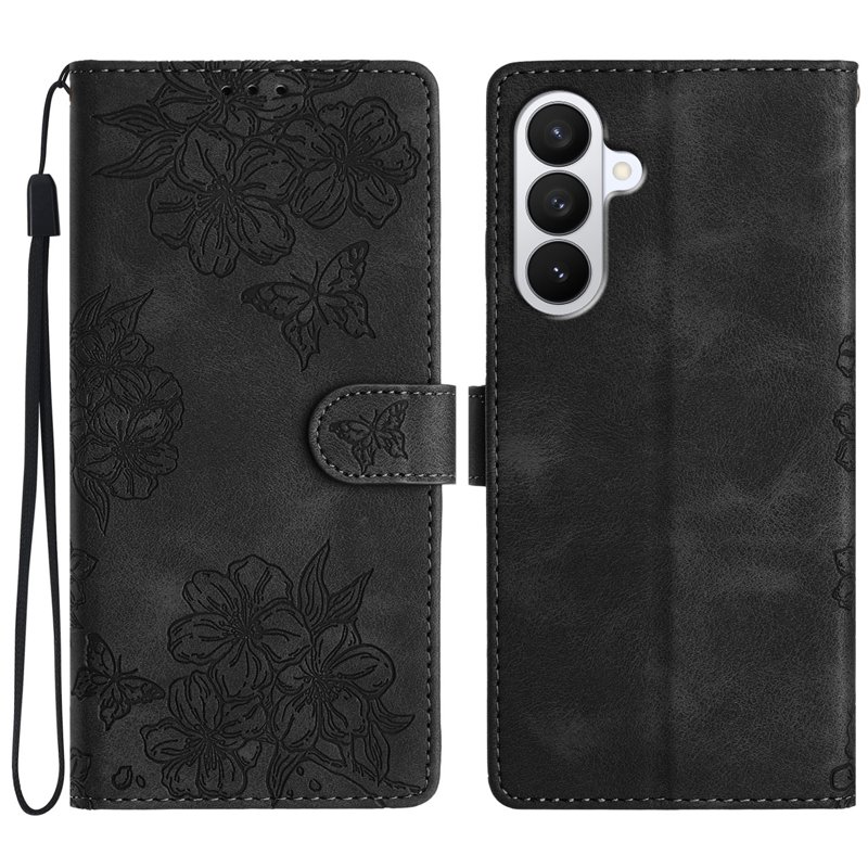 Samsung Galaxy S26 Pro Skal Butterfly Blommönster Konstläder - Svart