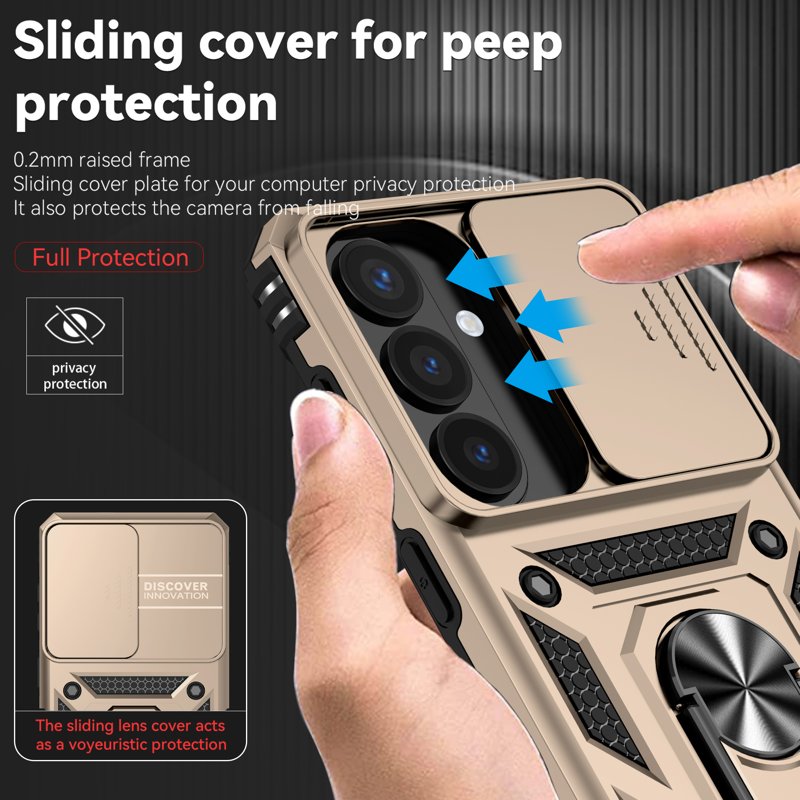 - Skyddande kamerafodral - Det glidande locket skyddar din kameralins från repor och ger integritet när det inte används.