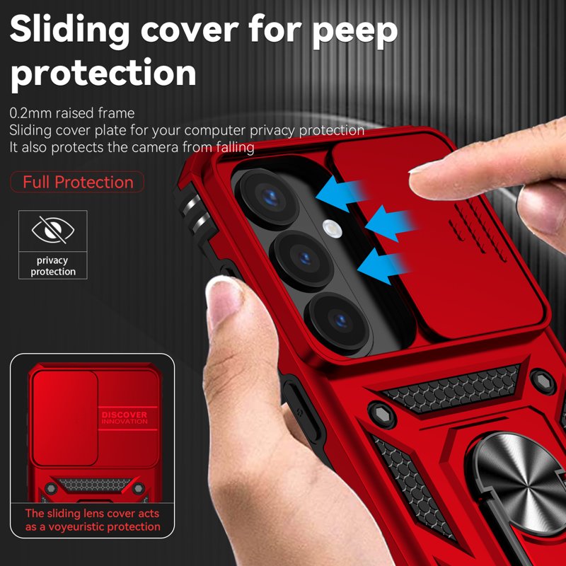 - Skyddande kamerafodral - Det glidande locket skyddar din kameralinse från repor och ger integritetsskydd när det inte används.