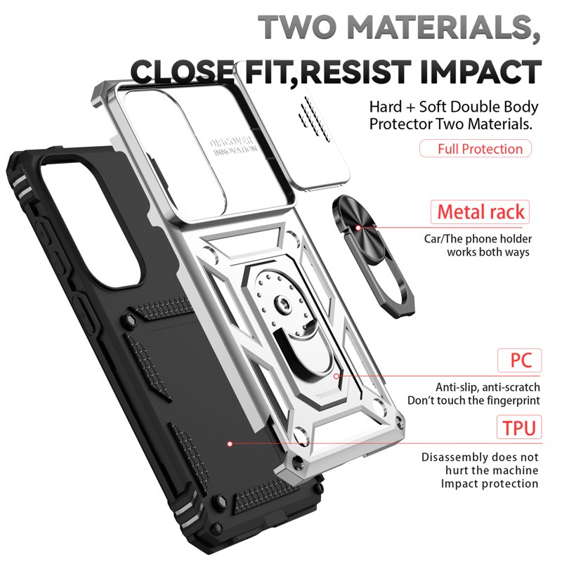 Handla denna produkt Samsung Galaxy S26 Skal Plast med Linsskydd Ställ - Silver