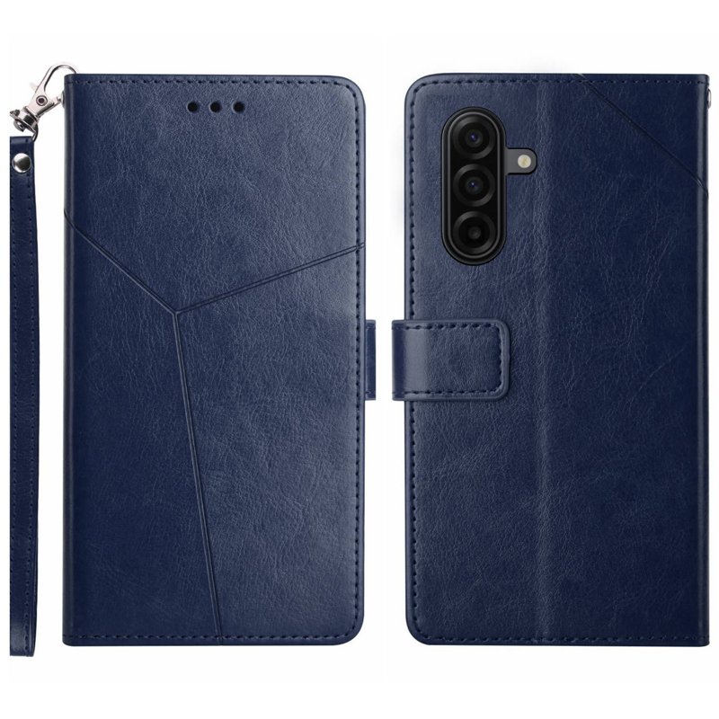 Skydda din Samsung Galaxy S26 med det stiliga Y Shaped Lines Imprint Leather Phone Cover i blått. Detta fodral kombinerar högkvalitativt PU-läder och TPU för att ge både hållbarhet och elegans. Med praktiska funktioner som kortfack och en vikbar ställning, är detta fodral perfekt för den moderna användaren.