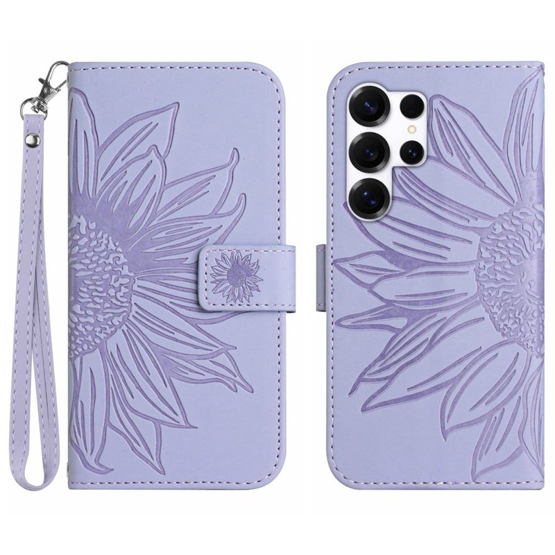 Skydda din Samsung Galaxy S26 Ultra med detta eleganta Sunflower Imprint Leather Wallet Phone Cover. Det ljuslila fodralet kombinerar stil och funktionalitet. Med en praktisk handledsrem och smarta fack för kort och kontanter är detta fodral både snyggt och praktiskt.