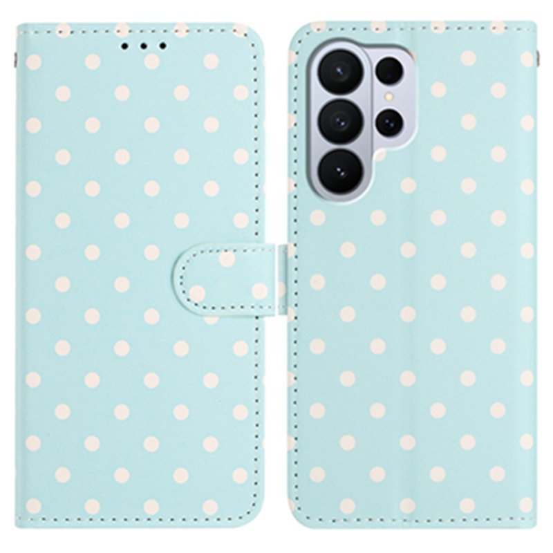 Samsung Galaxy S26 Ultra Fodral Äkta Läder Polka Dot - Blå