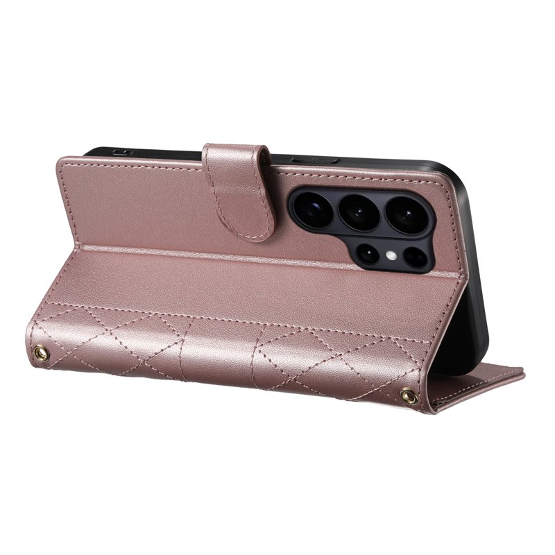 Skydda din Samsung Galaxy S26 Ultra med denna stiliga Wallet Case i Rhombus Stitching. Tillverkad av högkvalitativt PU-läder, erbjuder den både elegans och funktionalitet. Med flera kortfack och en praktisk ståfunktion är detta fodral perfekt för den moderna användaren som vill ha allt i ett.